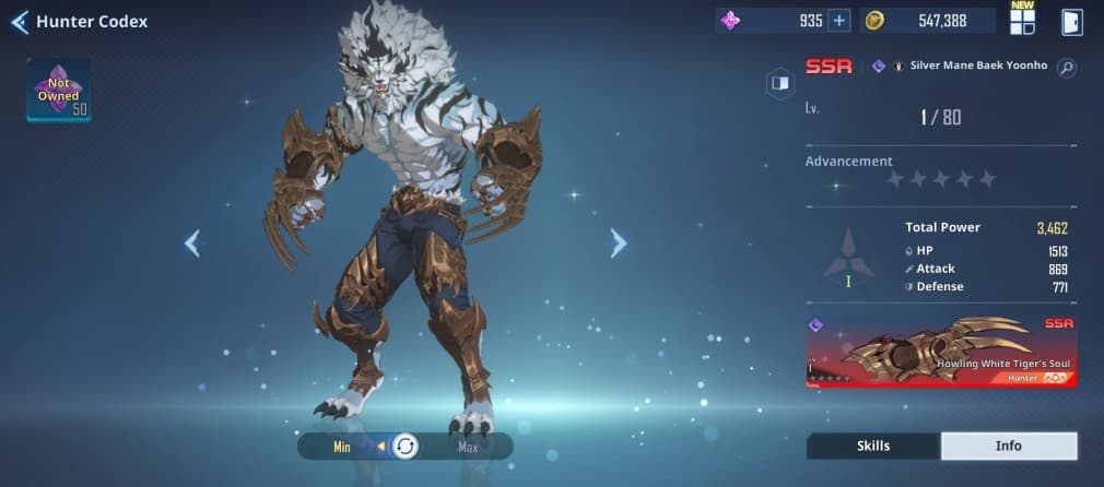 Silver Mane is a Dark Fighter whose attack damage increases considerably, the more a battle goes on. He scales with attack and HP, dealing incredibly high damage while also being tanky. He becomes even stronger when equipped with his weapon, Howling White Tiger's Soul.